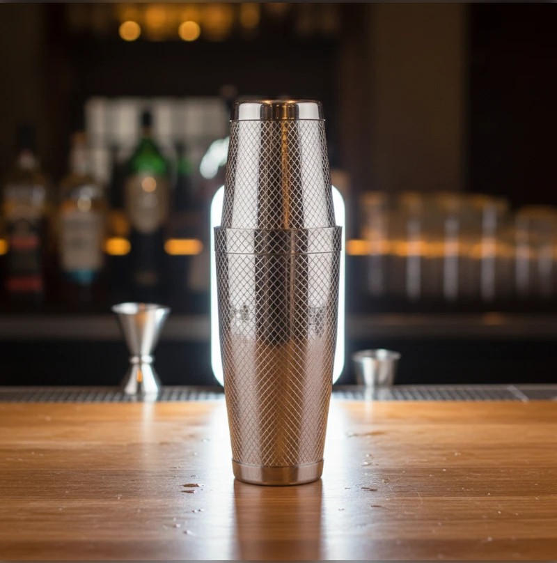 Élevez votre niveau en mixologie avec notre Shaker Boston en acier inoxydable au motif Grid. Conçu pour répondre aux exigences des barmans professionnels et des passionnés de cocktails, cet outil allie esthétisme et haute performance.