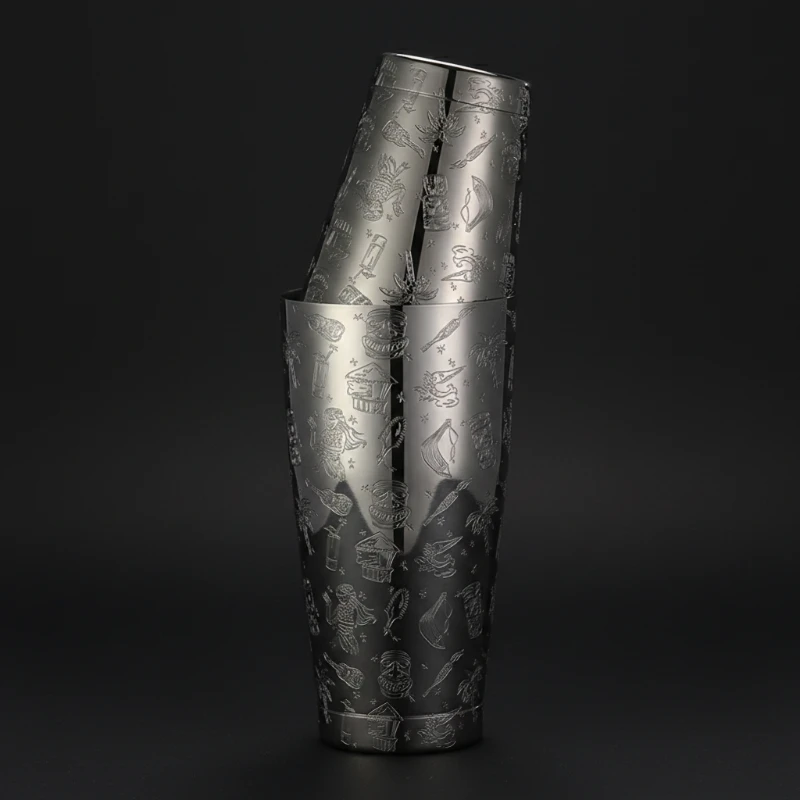 Plongez dans l’univers exotique et fascinant de la culture Tiki avec le Shaker Boston Tiki Gunmetal Black. Conçu pour les barmans professionnels et les passionnés de mixologie, ce shaker haut de gamme se distingue par ses gravures hawaïennes minutieusement détaillées, incluant des masques tribaux, des palmiers et des danseuses de hula. Sa finition noire Gunmetal lui confère une élégance sombre et sophistiquée qui fera sensation derrière n’importe quel comptoir de bar.