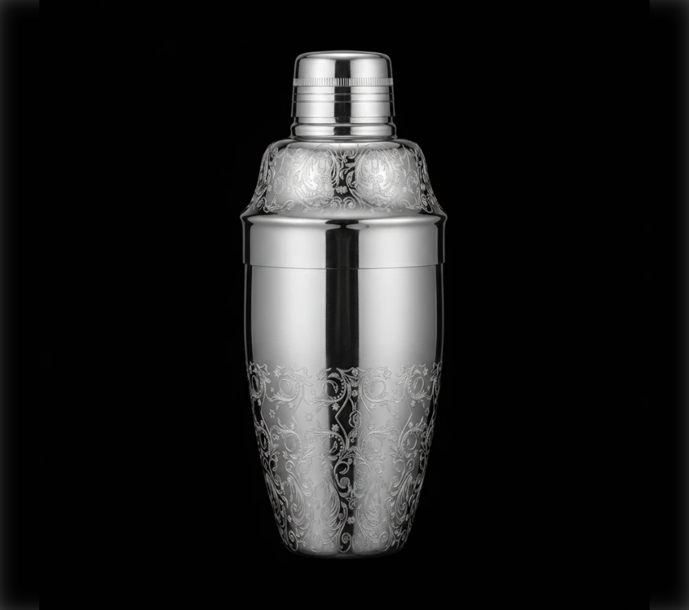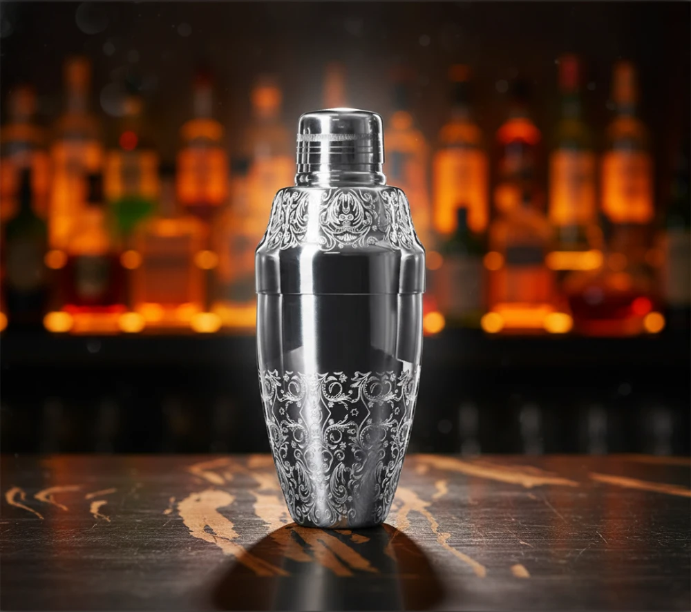 Sublimez votre mixologie avec ce magnifique Shaker Cobbler gravé de motifs arabesques. Doté d’une passoire intégrée, il allie parfaitement esthétique vintage et efficacité professionnelle.