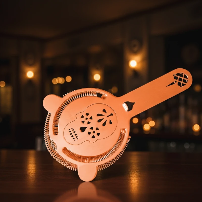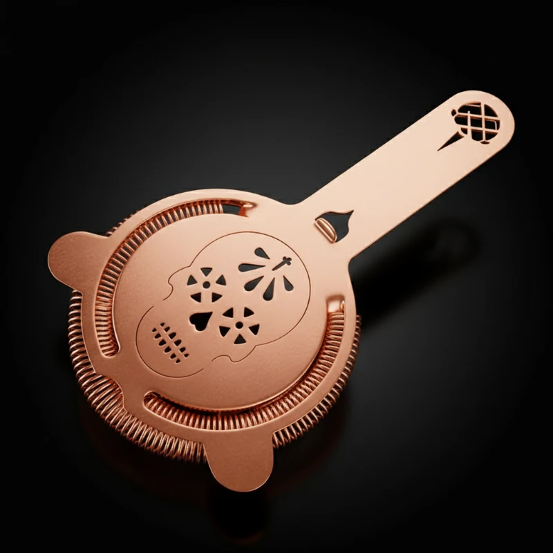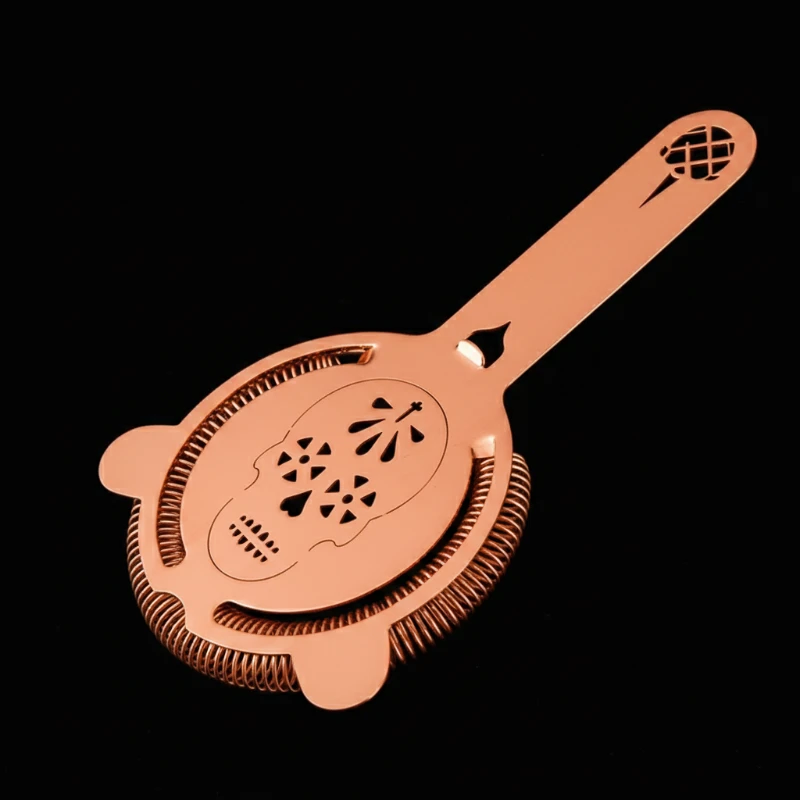 Élevez votre art de la mixologie avec la passoire à cocktail Aztec, un accessoire indispensable pour tout barman exigeant. Sa finition cuivre (Copper) élégante et son motif inspiré des célèbres Calaveras mexicaines en font une pièce maîtresse de votre équipement de bar. Conçue en acier inoxydable 304 de qualité alimentaire, cette passoire garantit une durabilité exceptionnelle, résistant à la rouille et aux utilisations intensives sans jamais se déformer.