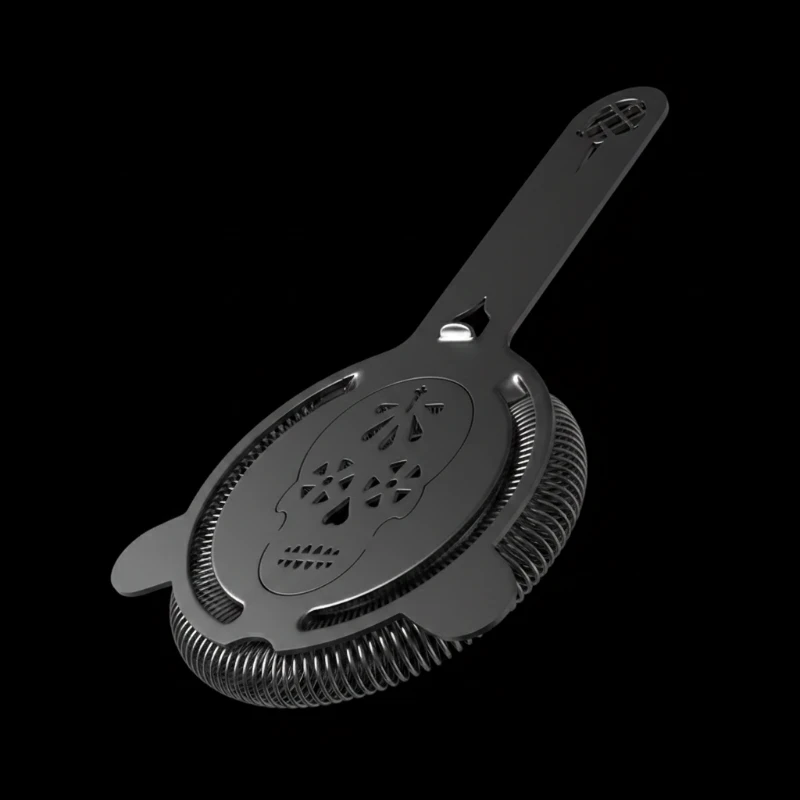 Sublimez vos préparations avec la passoire à cocktail Aztec en finition Gunmetal Black, alliant un design mystique à une efficacité de filtrage professionnelle.
