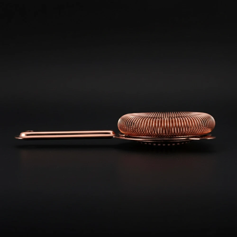 Sublimez vos créations avec cette passoire à cocktail (strainer) finition cuivre, l’outil indispensable des barmans exigeants. Conçue pour retenir la glace et la pulpe, elle garantit des cocktails d’une limpidité parfaite.