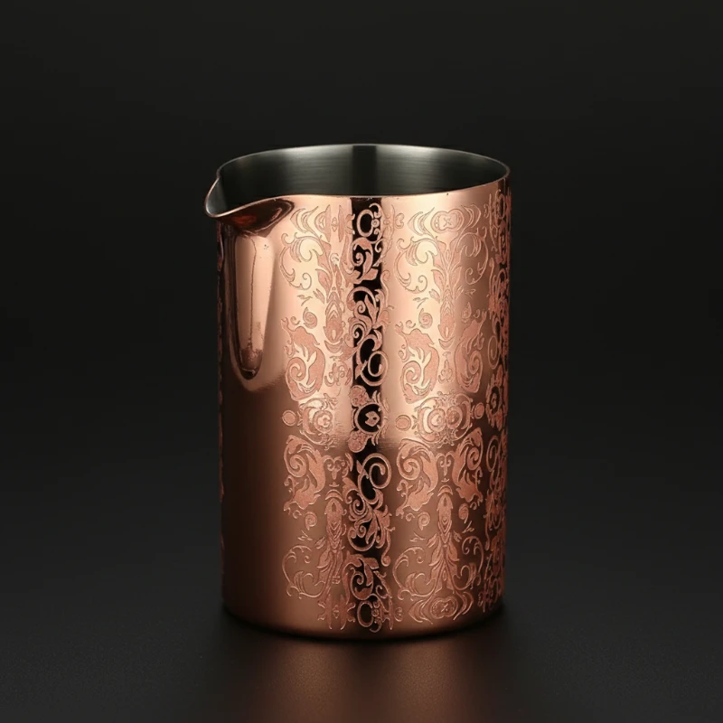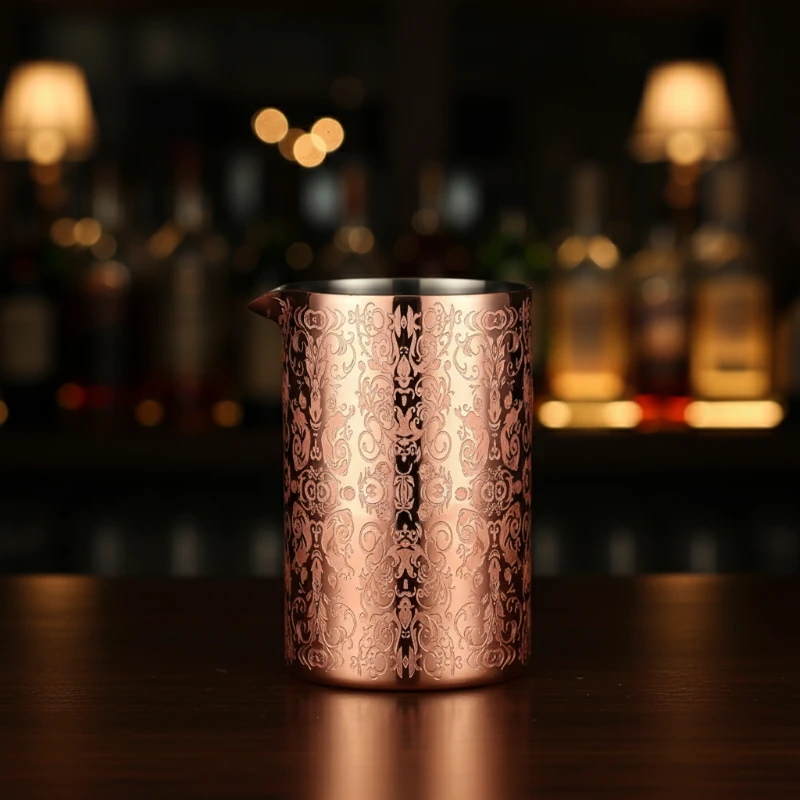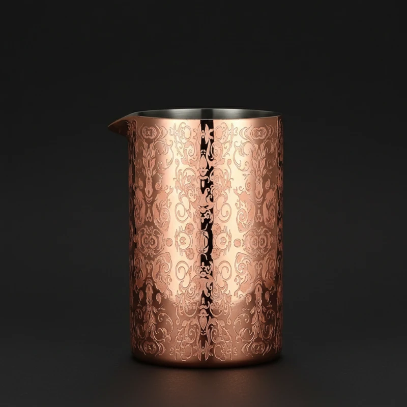 Le verre à mélange ‘Copper Arabesques’ est l’outil indispensable pour tout barman ou passionné de mixologie souhaitant allier esthétique et performance. Contrairement aux modèles classiques en verre, sa conception en acier inoxydable de haute qualité lui confère une robustesse exceptionnelle, idéale pour les environnements de bar à haut débit où la casse doit être évitée. Son fini cuivré brillant, gravé de motifs arabesques détaillés, apporte une touche d’élégance vintage à votre plan de travail.
