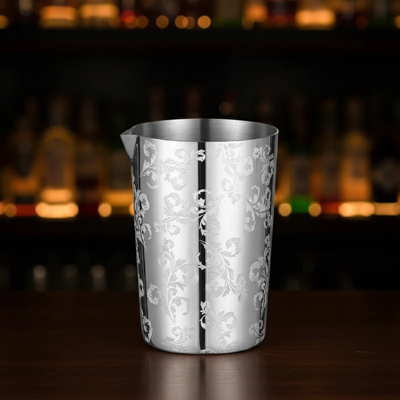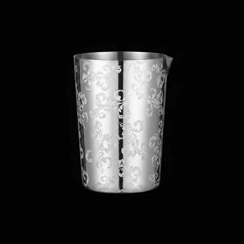 Le verre à mélange est la pièce maîtresse de tout barman passionné par la mixologie. Ce modèle en acier inoxydable se distingue par son raffinement absolu grâce à sa gravure Ferns (fougères) délicate. Une touche d’élégance vintage qui fera sensation sur votre comptoir, que vous soyez un professionnel exigeant ou un amateur éclairé.