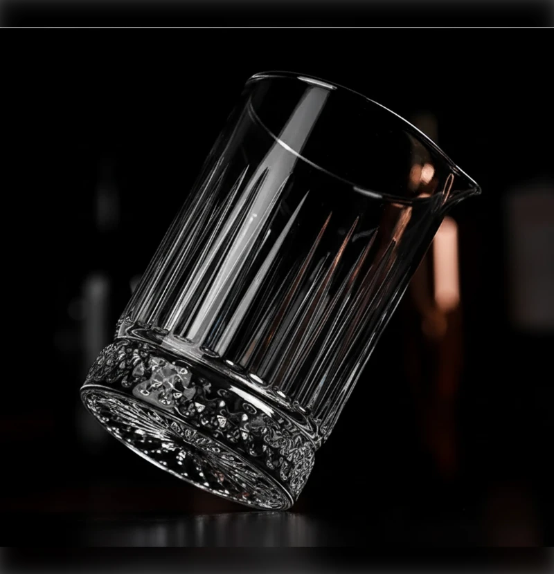 Élégant et robuste, ce verre à mélange de 750ml aux finitions striées est l’allié incontournable pour rafraîchir vos cocktails à la cuillère avec précision et style.